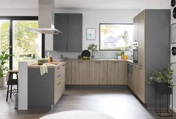 KUHINJA, mat bela, artisan hrast, soft-close, ŠxVxG: 280x210x60 cm. Pomivalno korito, steklokeramična kuhalna plošča, vgradna pečica in napa za doplačilo, 201303
