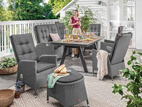 MIZA, aluminijasto ogrodje, V-noge, antracit, keramična plošča, optika lesa, temno siva, DxŠxV: 200x100x75 cm, 203084, VRTNI STOL, videz ratana, siva, aluminijasto ogrodje, nastavljiv naslon za hrbet, vklj. blazina, ŠxVxG: 57x112x62 cm, 200906