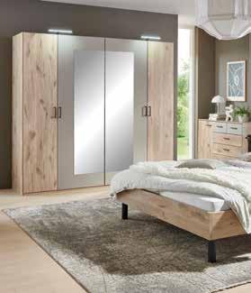 SPALNICA, barva: hrast/siva, sestavljena iz omare, ŠxVxG 225x208x58 cm, postelje 180x200 cm, z LED osvetljavo (energijski razred F), dodatno pohištvo za doplačilo, 203590