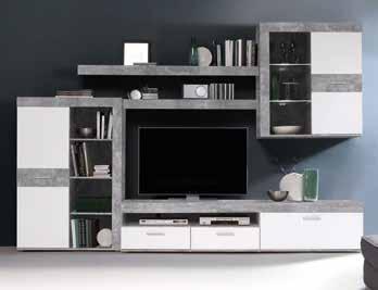 DNEVNI REGAL, barva: videz betona/bela, ŠxVxG: 300x201x41 cm, vklj. LED osvetljava, energijski razred A+, 179914/2