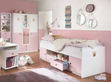 GARDEROBNA OMARA, bela/rožnata, ŠxVxD: 139x199x58 cm, vklj. paspartu in mehko zapiranje, 203790. POSTELJA, barva: bela/rožnata, 90x200 cm, 2x vrata, 2 predala, 203790/2