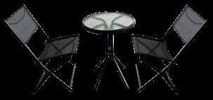 BISTRO SET, jeklo, 1x miza, steklena plošča, ø: 50 cm, 2x stol, tekstilen, črn, 55x46x80 cm, 198777