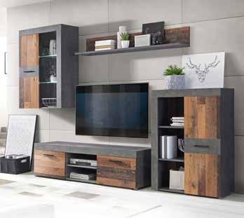 TV ELEMENT, dekor: peščena/artisan hrast, 3 vrati, ŠxVxG: 224,8x58,2x41,6 cm, 203082. STENSKI REGAL S POLICO, artisan hrast, ŠxVxG: 225x170,6x24,8 cm, zdaj 169,99, 203082/1. VITRINA, dekor: peščena/artisan hrast, 1 steklena vrata, ŠxVxG: 60,4x197,4x41,6 cm, zdaj 309,99, 203082/2. KLUBSKA MIZA, dekor: artisan hrast, ŠxVxG: 74,4x45,5x74,4 cm, 203082/4