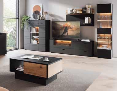 TV ELEMENT, črna mat, evoke hrast, mere: 120x56,5x40 cm, 202022. KLUBSKA MIZA, črna mat, evoke hrast, mere: 100x45,5x64 cm, 202022/7