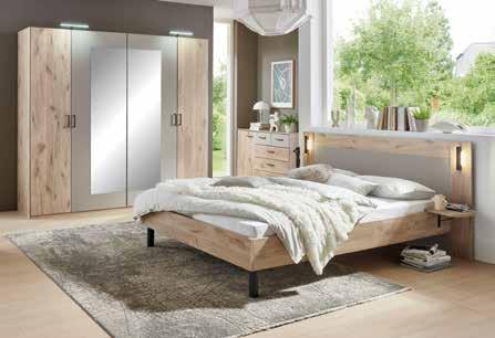 SPALNICA, barva: hrast/siva, sestavljena iz omare, ŠxVxG 225x208x58 cm, postelje 180x200 cm, z LED osvetljavo (energijski razred F), dodatno pohištvo za doplačilo, 203590