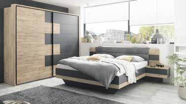 Armadio con ante scorrevoli, colore: rovere/grigio grafite, numero ante: 2, con tubo appendiabiti, misure: 270x210x60 cm, passepartout non incluso nel prezzo, 194793/1 Letto matrimoniale 180x200 cm, colore: rovere/grigio grafite, incl. 2 comodini e testiera imbottita, misure: 297x4699x212 cm, 194793/2