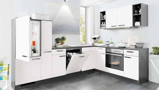 Cucina, colore: bianco/grigio, 270x225 cm, incl. tutti gli elettrodomestici, disponibile in diversi colori e configurazioni. Lavastoviglie e lavello non inclusi nel prezzo, 195509/1