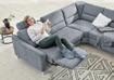 Wohnlandschaft, Polstergarnitur, Stoff, grau, inkl. elektrischer Sitztiefenverstellung und 2 mittlere Kissen, Maße: 195x301 cm, in verschiedenen Zusammenstellungen und Farbkombinationen erhältlich. Zusätzliche Kissen gegen Mehrpreis, 201163