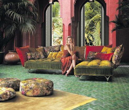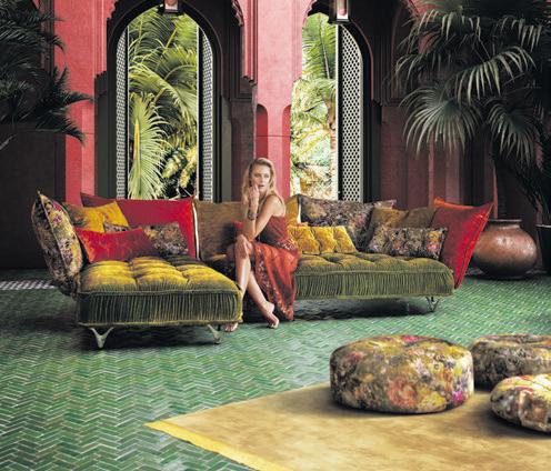 Wohnlandschaft, Stoff, olivgrün/orange/gobelin/gold, Maße: 342x217 cm. 2 Zierkissen, 63x50 cm und Beimöbel gegen Mehrpreis, 183284/10 ab 8.299,-