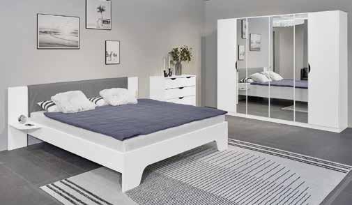 LETTO, con comodino e testata imbottita, dimensioni: 180x200cm, 203034, ARMADIO A 6 ANTE CON 4 SPECCHI, dimensioni: 225x197x54cm, 203034/1