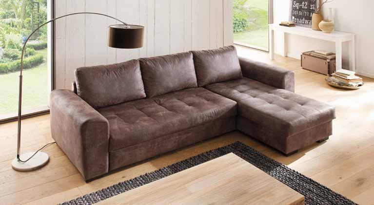DIVANO ANGOLARE, in tessuto, colore: marrone, con funzione letto e contenitore, superficie letto: 138x201 cm, 198677