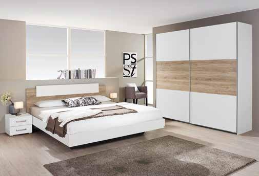 CAMERA DA LETTO COMPLETA, colore: bianco/rovere Sonoma, composta da: armadio con ante scorrevoli, numero ante: 2, misure: 175x210x59 cm, letto matrimoniale 180x200 cm e 2 comodini, 198498
