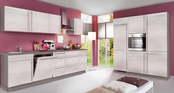 CUCINA, colore: rovere bianco e rovere grigio, 270x180 cm, Disponibile in varie configurazioni e combinazioni di colori. Elettrodomestici da incasso e lavello a pagamento, 181686/3