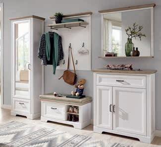Garderoba, siva/ dekor hrast, sestavljena iz: omare za čevlje, ogledala s polico in panela s 3 kavlji, ŠxVxG: 134x194x35 cm, 203842