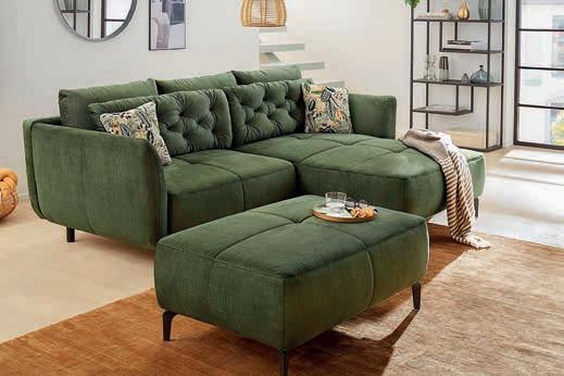 Sedežna garnitura, tkanina, zelena, noge: črne, vklj. 3 velike blazine, 2 prešiti blazini in 2 okrasni blazini, ŠxVxG: 251x92x186 cm. Tabure za doplačilo, 201384