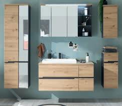 Kopalnica, artisan hrast/siva, širina: 110 cm, sestavljena iz: umivalnika z omaro pod umivalnikom in omaro z ogledalom z osvetljavo. Dodatno pohištvo za doplačilo, 201782/5