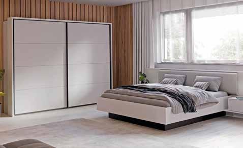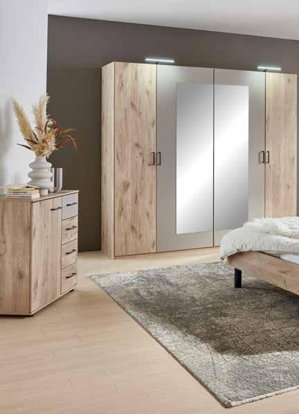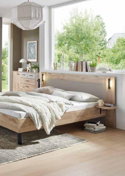 CAMERA LETTO, colore: rovere/grigio, composta da: armadio con ante scorrevoli, LxAxP: 225x208x58 cm, letto 180x200 cm, con illuminazione LED (classe energetica F), complementi d'arredo ed illuminazione armadio a sovrapprezzo, 203590