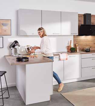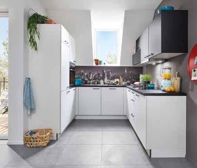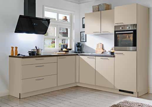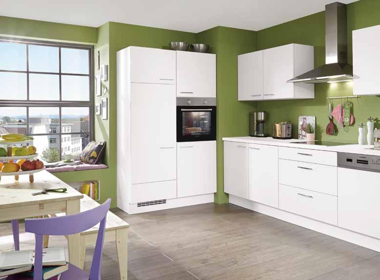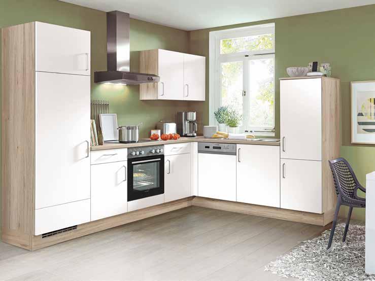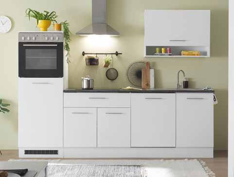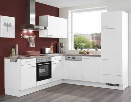 CUCINA, colore: bianco opaco, 260x220 cm, inclusi tuti elettrodomestici in acciaio indicati, disponibile in diversi configurazioni. Lavastoviglie, lavello e cappa a sovrapprezzo, 199781 *Prezzo di vendita raccomandato dal fornitore. 555,-