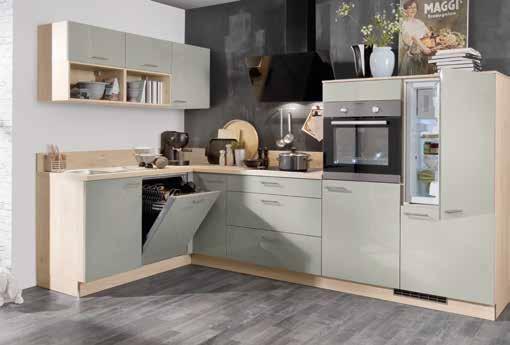 CUCINA, colore: laccato lucido grigio chiaro, 305x185 cm, disponibile in diverse configurazioni e combinazioni di colori. Elettrodomestici e lavello da incasso a pagamento, 204702 *Prezzo di vendita raccomandato dal fornitore.