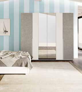 CAMERA DA LETTO, colore: bianco/grigio effetto cemento, composta da: armadio a 6 ante battenti con 2 specchi centrali, misure: 258x238x57 cm, letto matrimoniale con contenitore 160x190 cm, misure: 172x88x200 cm, 2 comodini con 2 cassetti, misure: 48x41x38 cm, comò con 3 cassetti, misure: 103x74x47 cm, specchiera, misure: 90x60 cm, 193497