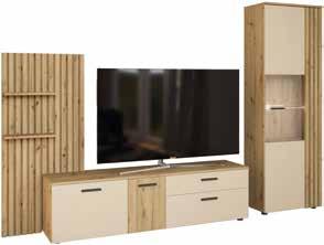 MOBILE PER TV DECORO: sabbia/artisan oak 3 porte, LxAxP: 224,8x58,2x41,6 cm, 203082 PANNELLO A PARETE, decoro: artisan oak LxAxP: 225x170,6x24,8 cm, invece di 246,-, adesso a 169,99, 203082/1 VETRINA, decoro: sabbia/artisan oak, 1 porta in vetro LxAxP: 60,4x197,4x41,6 cm, invece di 453,-, adesso a 309,99, 203082/2 TAVOLINO DA SALOT, decoro: artisan oak, LxAxP: 74,4x45,5x74,4 cm, 203082/4