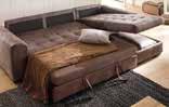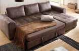 DIVANO ANGOLARE, in tessuto, colore: marrone, con funzione letto e contenitore, superficie letto: 138x201 cm, 198677
