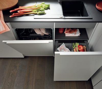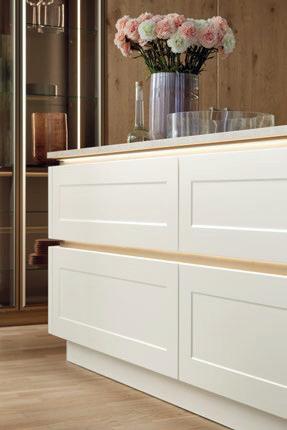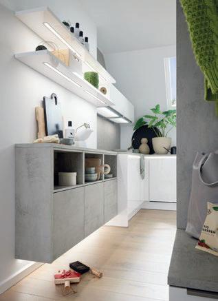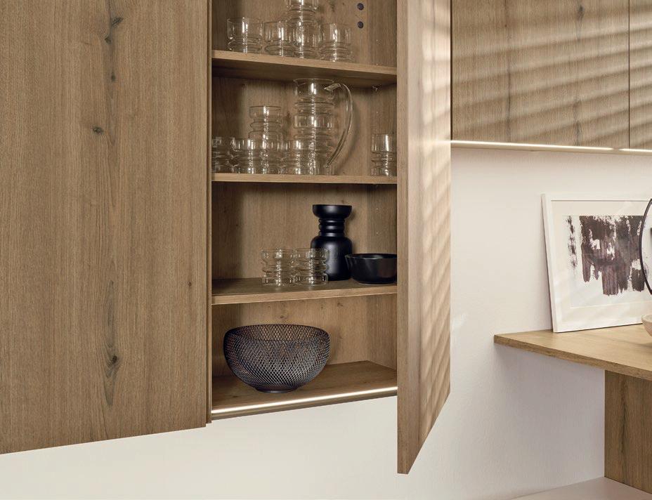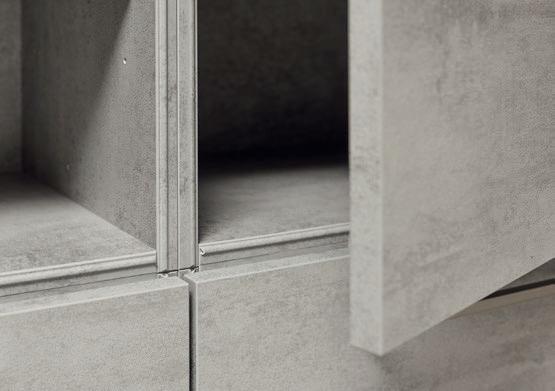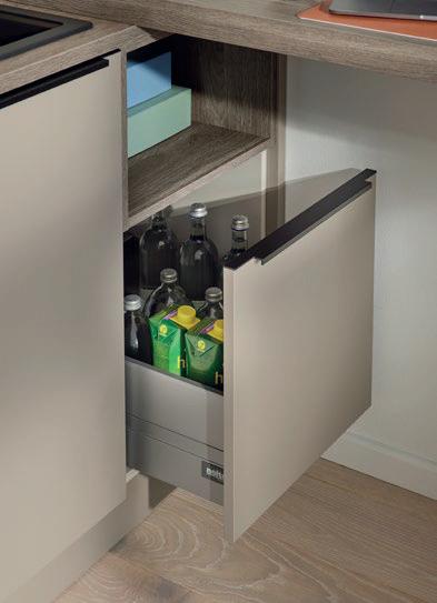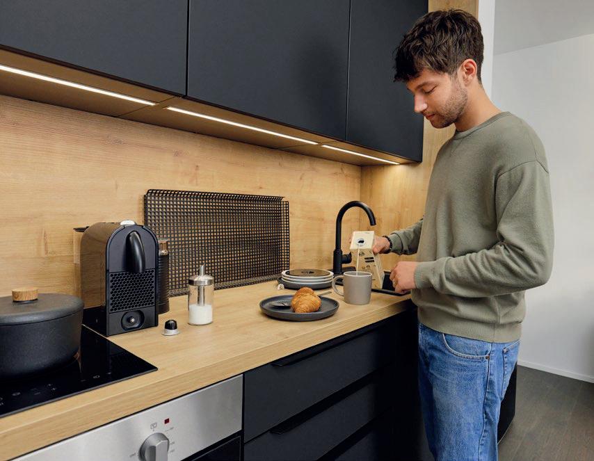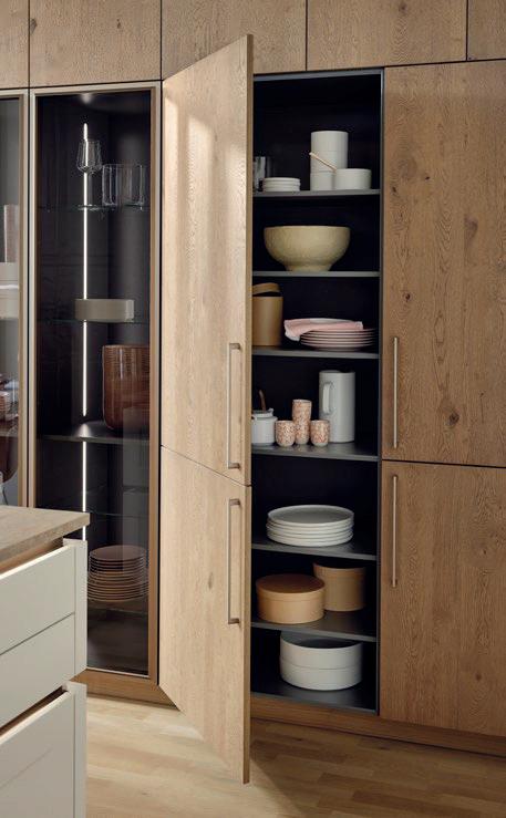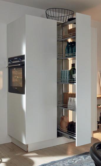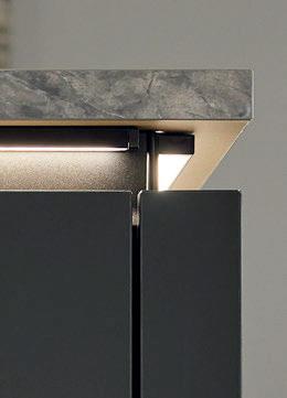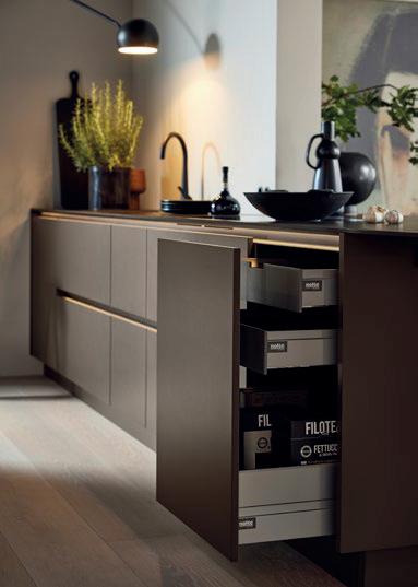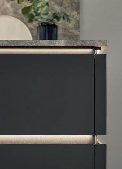 Matrix 800 bietet mehr Stauraum und vielfältige, designorientierte Gestaltungsmöglichkeiten. Die neue Korpushöhe ermöglicht die Integration von Auszügen mit 40 cm Höhe und Schubladen mit 20 cm Höhe, was eine optimale Raumausnutzung schafft. Gleichzeitig sorgt sie für eine zeitgemäße Optik mit durchdachten Details.