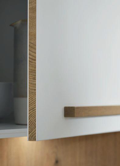 Mit dekorgleicher Dichtkante an der Korpusvorderseite schließen die Türen so perfekt, dass weniger Staub ins Schrankinnere dringt.