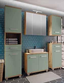 VITRINA VISOKA, boja: zelena/hrast Artisan, broj vrata: 2, broj ladica: 1, ŠxVxD: 40,2x186,8x34,8 cm, 201200 , ORMAR SA OGLEDALOM, boja: zelena/hrast artisan, broj ogledala: 3, uključujući osvjetljenje, ŠxVxG: 68,6x68,1x20 cm, 201200/5