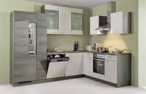 CUCINA, colore: bianco opaco/rovere, 310x205 cm, inclusi gli elettrodomestici elencati, disponibile in diversi colori e configurazioni, lavastoviglie e lavello non inclusi nel prezzo. 197916