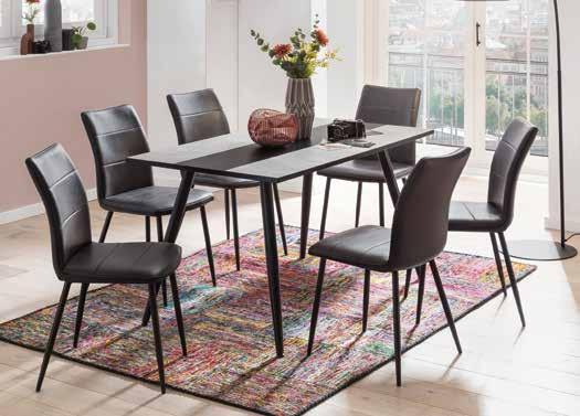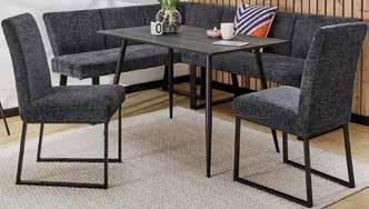 TAVOLO, ottica in legno, struttura scura: metallo nero, dimensioni: 120x70 cm, 203337. Panca angolare, in tessuto, colore: grigio-blu, struttura in metallo: nero, misure: 154x200 cm, adessoa 599,-, 203337/1. SEDIA, in tessuto, colore: grigio-blu, struttura in metallo: nero, altezza seduta: 48 cm, LxAxP: 47x92x62 cm, 203337/2