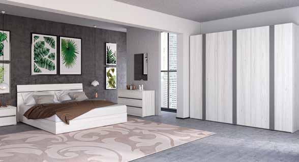 CAMERA DA LETTO, colore: bianco frassino/grigio ghiaccio, composta da: armadio a 6 ante battenti, misure: 240x238x55 cm, letto matrimoniale 160x200 cm con contenitore, 2 comodini, comò con 3 cassetti, specchiera, 199135 *Prezzo di vendita raccomandato dal fornitore.