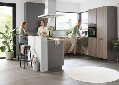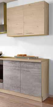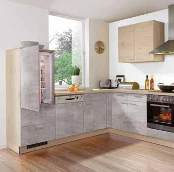 CUCINA, colore: grigio effetto cemento/rovere, 245x305 cm, incl. tutti gli elettrodomestici Leonard: forno da incasso classe energetica A, piano cottura, frigorifero classe energetica F, cappa, disponibile in diversi colori e configurazioni. Lavastoviglie e lavello non inclusi nel prezzo, 188213/1