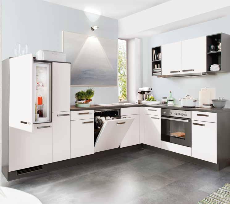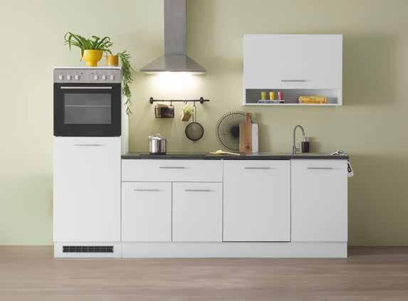 CUCINA, colore: bianco opaco, 260x220 cm, inclusi tuti elettrodomestici in acciaio indicati, disponibile in diversi configurazioni. Lavastoviglie, lavello e cappa a sovrapprezzo, 199781