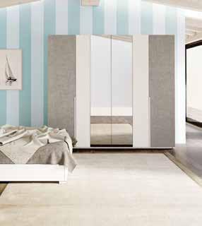 CAMERA DA LETTO, colore: bianco/grigio effetto cemento, composta da: armadio a 6 ante battenti con 2 specchi centrali, misure: 258x238x57 cm, letto matrimoniale con contenitore 160x190 cm, misure: 172x88x200 cm, 2 comodini con 2 cassetti, misure: 48x41x38 cm, comò con 3 cassetti, misure: 103x74x47 cm, specchiera, misure: 90x60 cm, 193497
