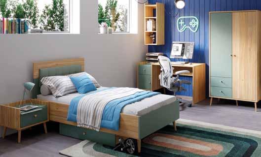 LETTO 1 PIAZZA E MEZZA, colore: rovere Mauvella/verde salvia, superficie letto: 120x200 cm, misure: 128x100x207 cm, 201251/1, ARMADIO, rovere, verde, 2 ante e 2 cassetti, LxAxP: 96x186x53 cm, 201251