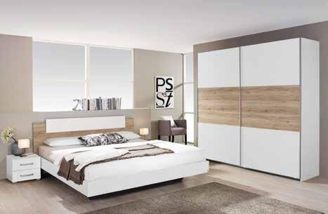CAMERA DA LETTO, colore: bianco/rovere Sonoma, composta da: armadio con ante scorrevoli, numero ante: 2, misure: 175x210x59 cm, letto matrimoniale 180x200 cm e 2 comodini, 198498