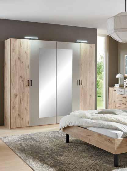 CAMERA LETTO, colore: rovere/grigio, composta da: armadio con ante scorrevoli, LxAxP: 225x208x58 cm, letto 180x200 cm, con illuminazione LED (classe energetica F), complementi d'arredo ed illuminazione armadio a sovrapprezzo, 203590