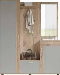 MOBILE PER INGRESSO, colore: rovere Viking/grigio, composto da: guardaroba, panca, pannello appendiabiti, specchio, cassettiera, LxAxP: 145x184x29 cm, 201095