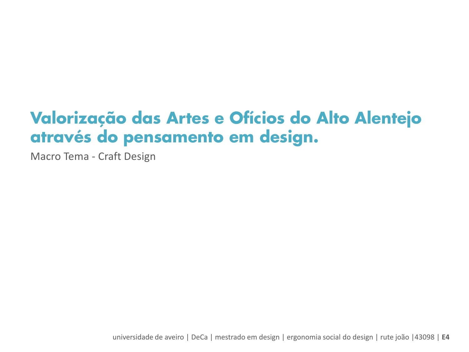 Valorização das Artes e Ofícios do Alto Alentejo através do pensamento em design. Macro Tema - Craft Design