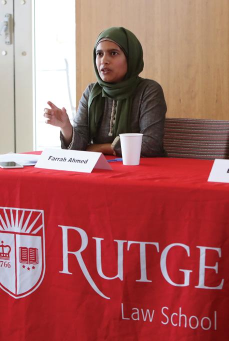 AN INTEGRAL PART of our work at the Center for Security, Race and Rights (CSRR) is training law students as they prepare to be zealous and competent advocates in their legal careers. As such, CSRR’s law fellowships offer an opportunity to take what law students learn in the classroom and put it into action through public education, advocacy, and research. Our four Rutgers law student fellows (Samantha Egge, Hani Jawabrah, Hakfa Oksuz, and Raiyan Hossain [not pictured]) have made essential contributions to the research underpinning CSRR’s most recent reports, as well as forthcoming reports, each centering the experiences of America’s diverse Muslim, Arab and South Asian communities. They have also taken the lead in public outreach and community coalition efforts addressing the most pressing civil and human rights challenges facing CSRR’s diverse constituency within New Jersey and across the country.