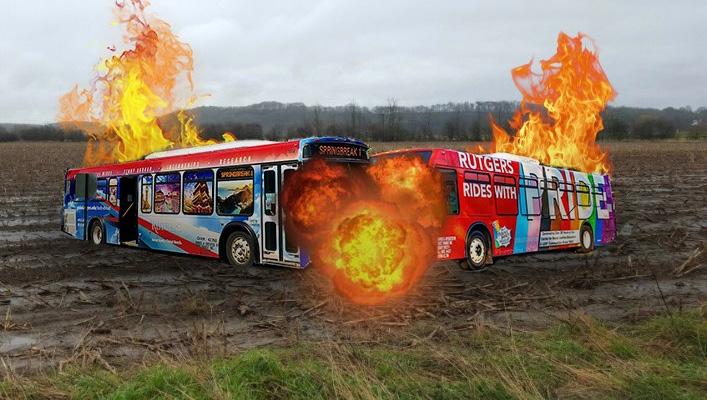 Last week, in a desperate move to add even more money to the athletics budget, Rutgers University converted the field of SHI Stadium into a mud pit to hold the first annual Rutgers Bus Demolition Derby.