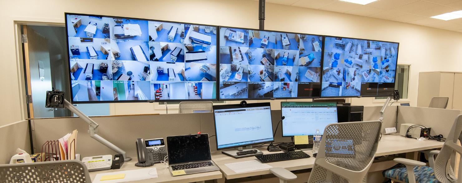 2, 3. The CSC boasts 12 identical rooms that look exactly like physicians’ offices. There is also a command center, where the simulations taking place in each room are broadcast live. Each room is next to a viewing room where faculty and/or other students may watch simulations in real time.