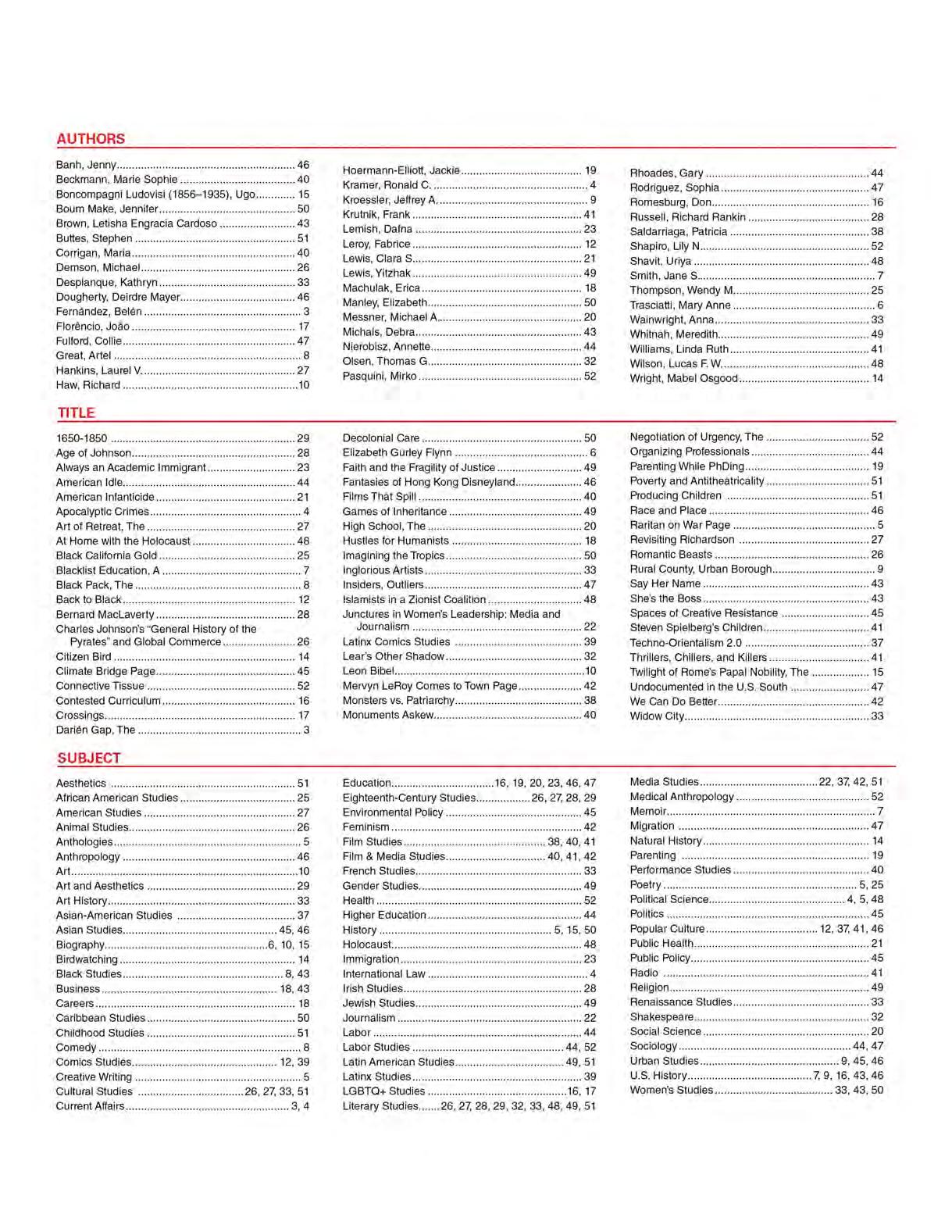 We issue seasonal catalogs twice a year, a regular catalog of regional titles, and catalogs or brochures for the subject areas in which we publish. For printed copies, see your sales representative or email: sales@rutgersuniversitypress.org
