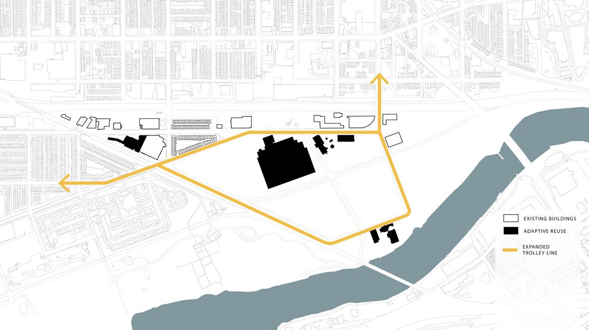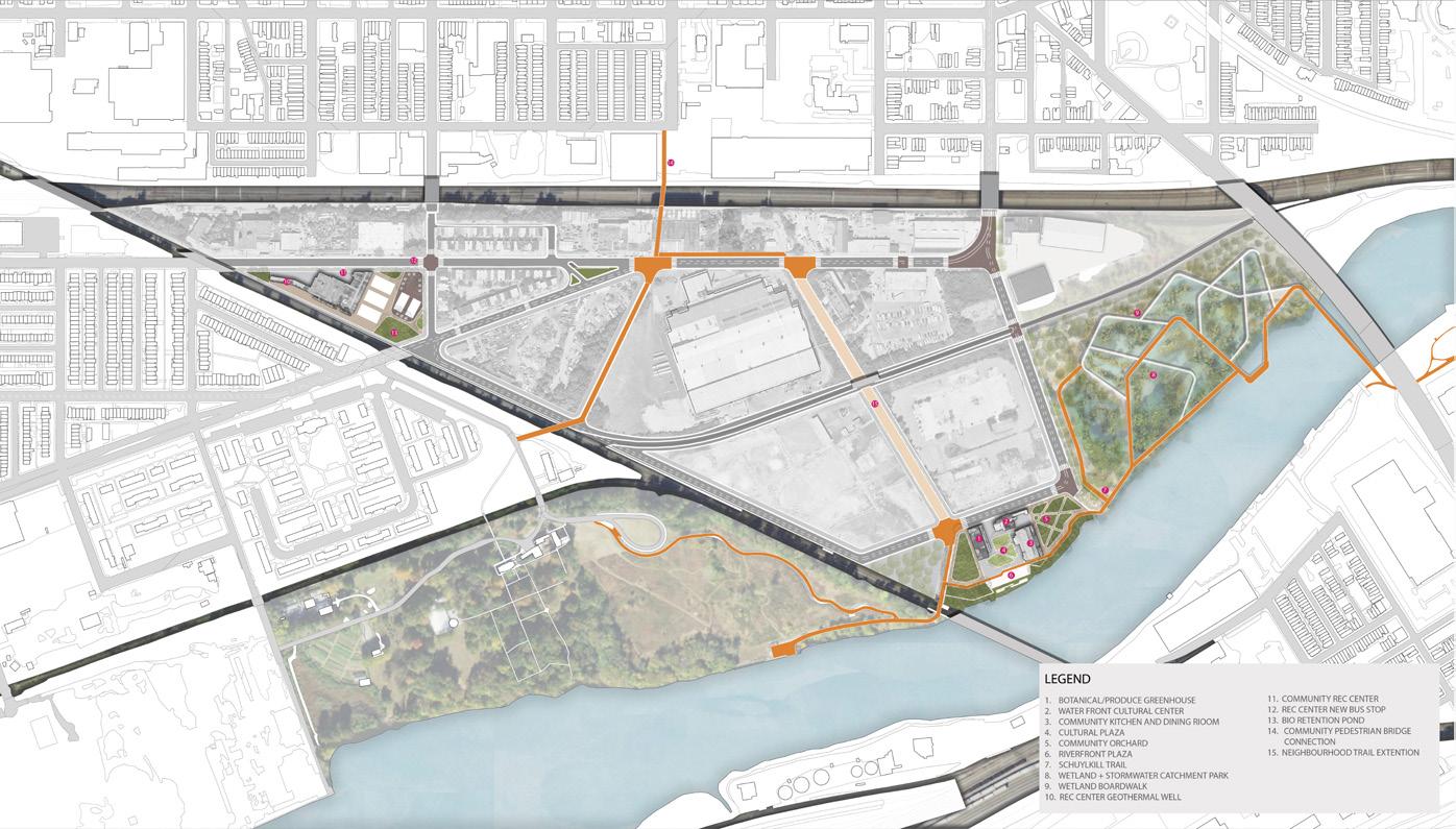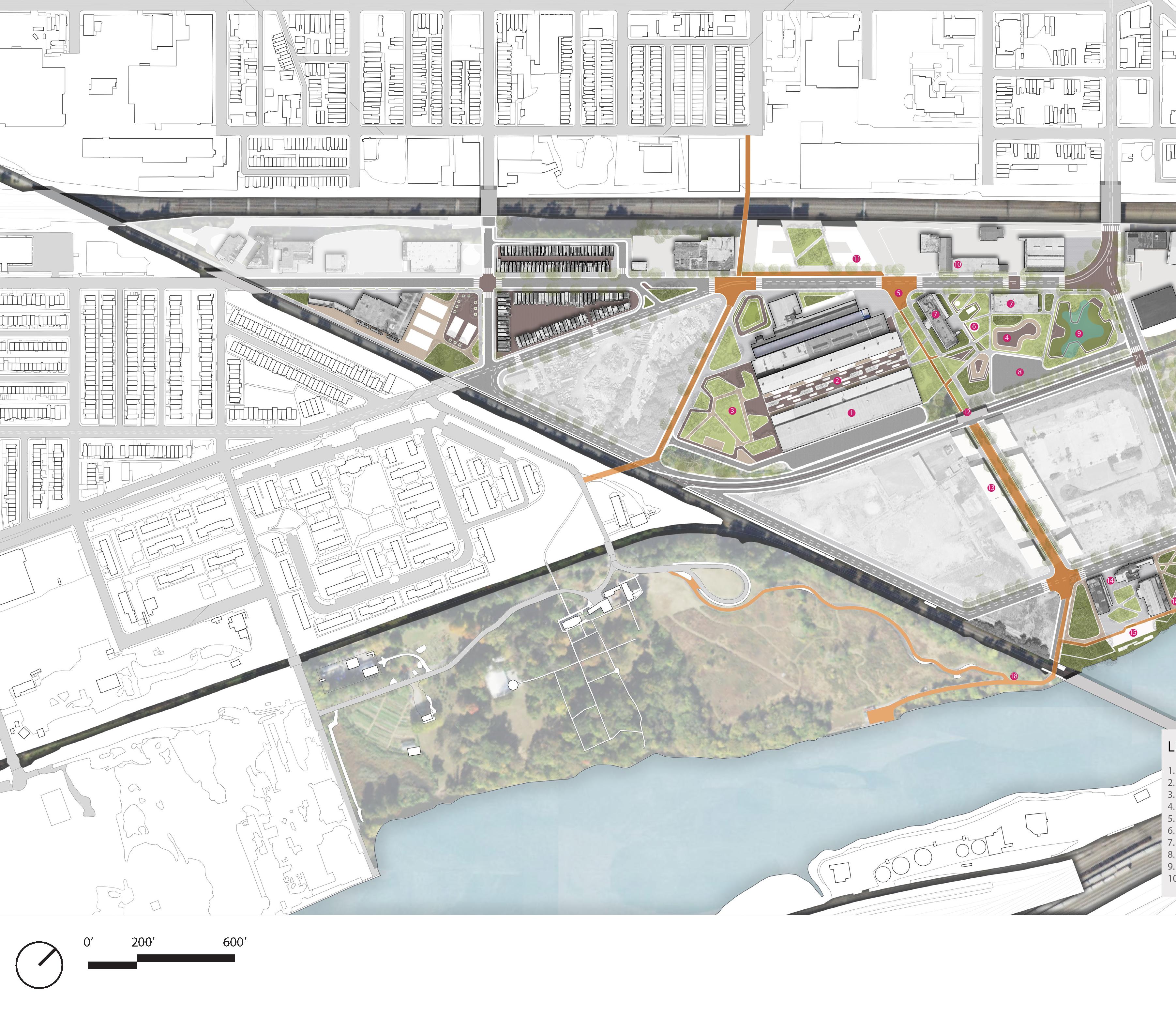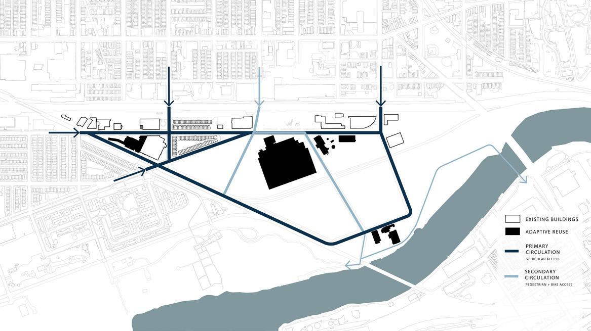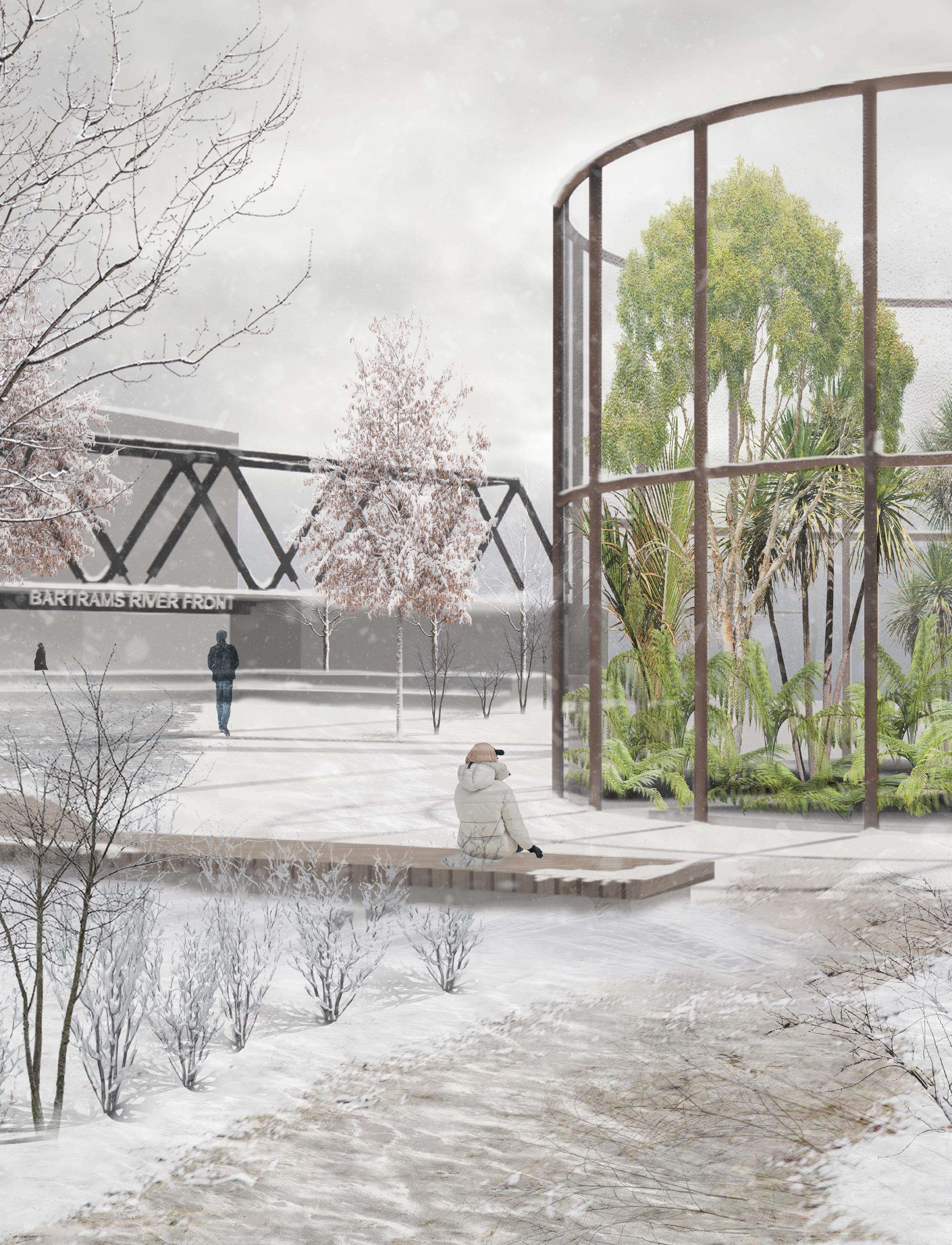 This site, positioned on the edge of the Schuylkill River adjacent to the historic Bartram’s Garden, is designed for both a low and high investment strategy. The project’s framework is driven by two sources of inspiration: Bartram’s Garden and the site’s abandoned industrial buildings. The design aims to amplify Bartram’s by bringing in community and vertical farming techniques, additional geothermal wells for power, and new botanic garden spaces. By investing in the existing buildings, the design reconfigures a new industrial core, exhibits new public garden spaces, and houses education for that enhances Bartram’s mission.