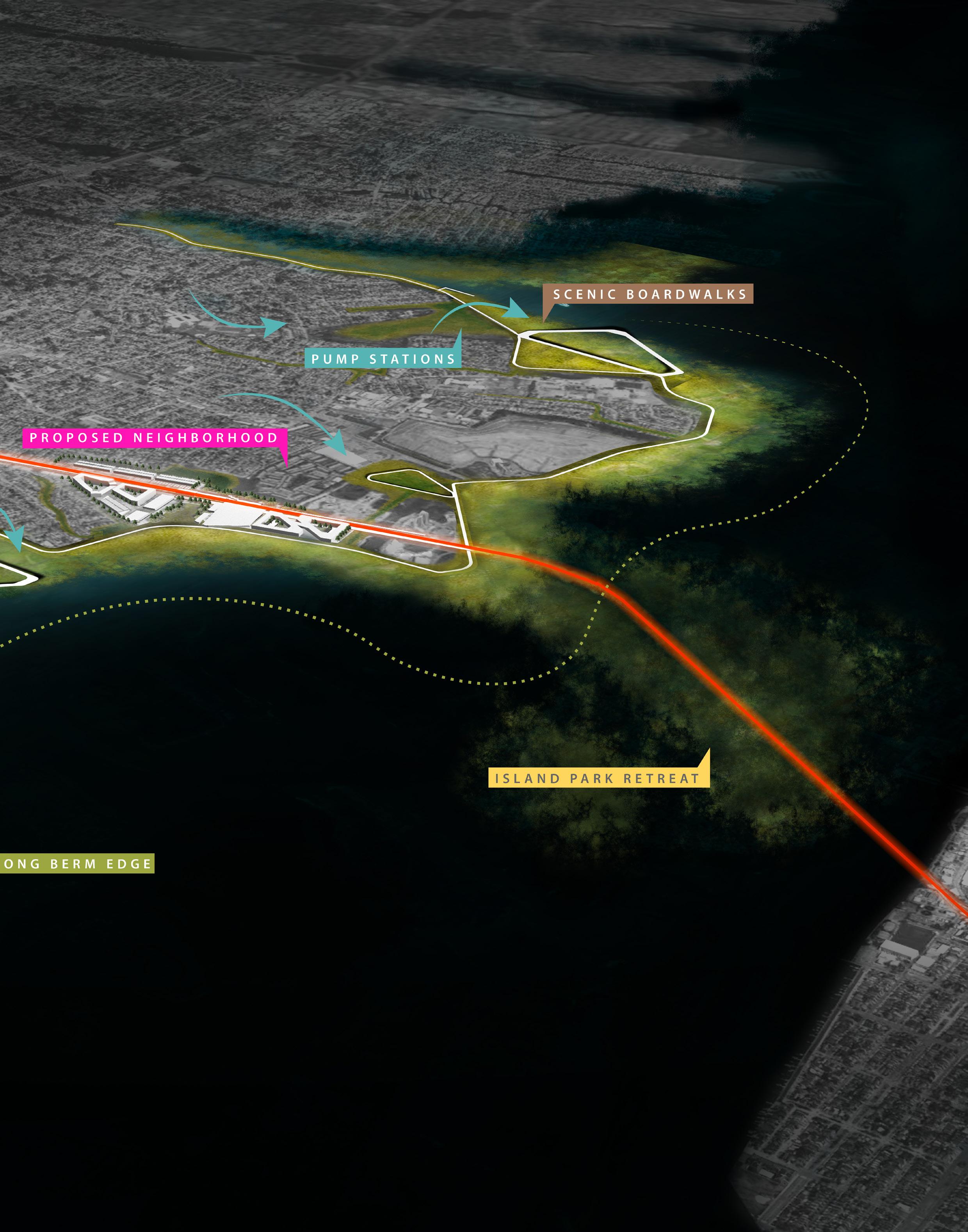 This work examines the coastal, regional, neighborhood, and street scale design potentials while applying protection, retreat, adaption, and development strategies. Each scale suggests a physical approach and has the potential to be developed and adopted by many communities for island wide resiliency.