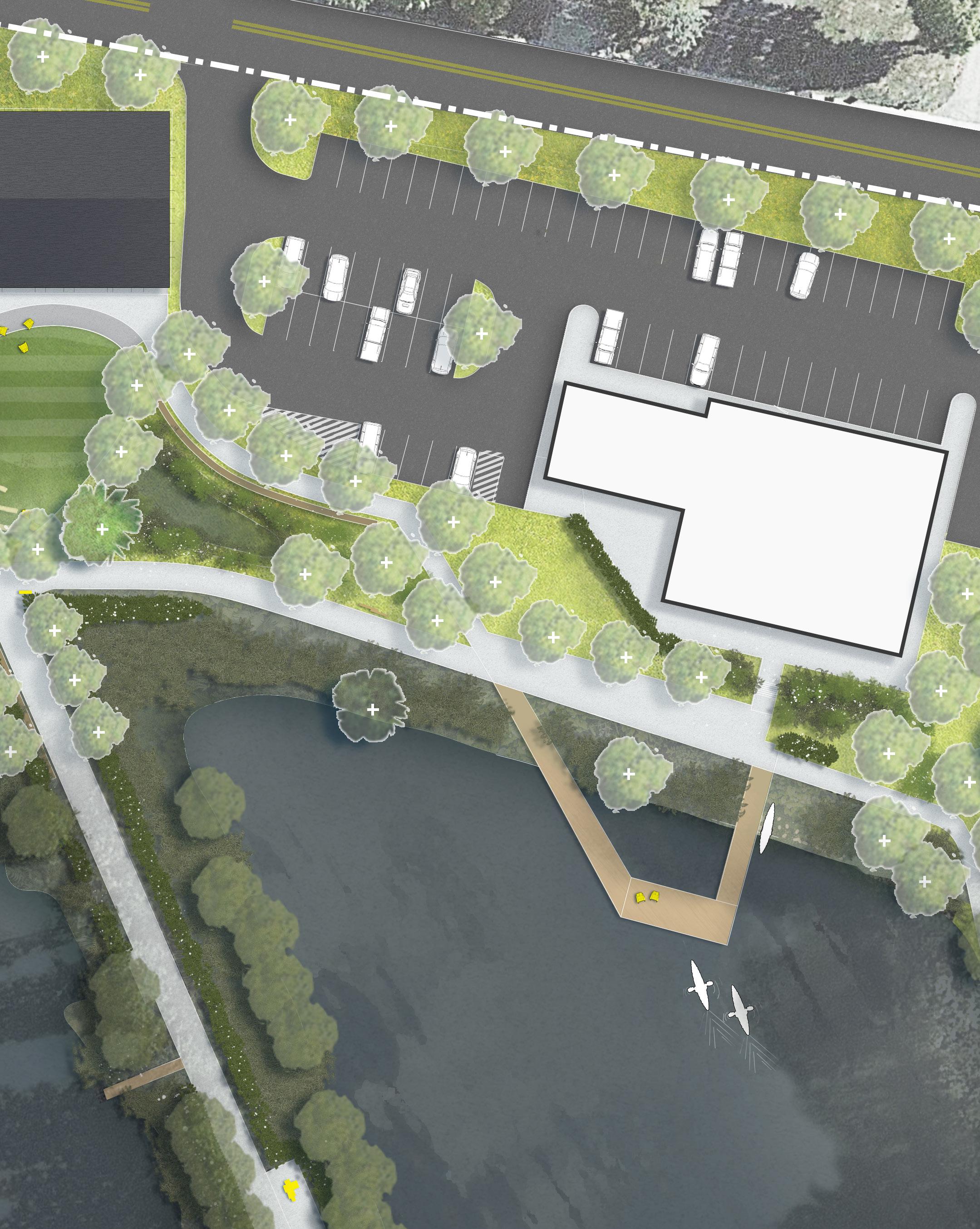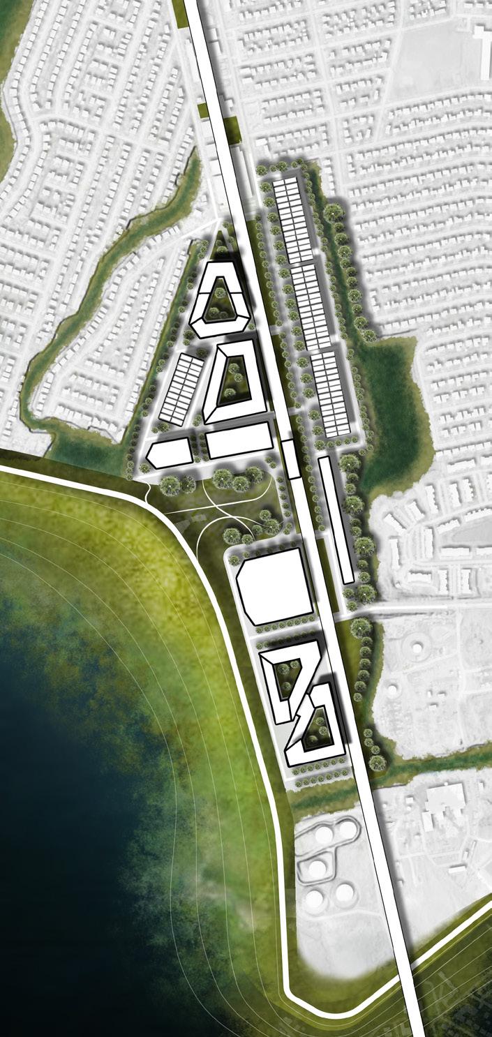 After initial research of Long Island’s downtown land uses, rail line corridors, and the potential impacts of coastal and inland flooding on these residential, commercial, and industrial spaces, I analyzed these intersections critically, developing radical suburban strategies that integrate varying scales and utilize core resilience strategies.