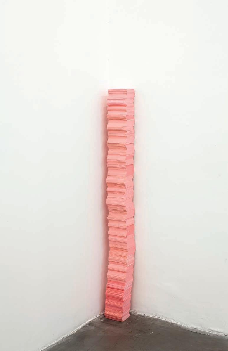 Scientific illustration, especially in the field of geography and its abstract symbolism, inspired Joglar to produce a series of exercises involving illustrations on paper, wood and stationary such as set squares. These are occasionally placed together to establish a shape superimposed over the others. Reams of coloured paper create new geographies and sculptures, producing new forms from pre-existing material.