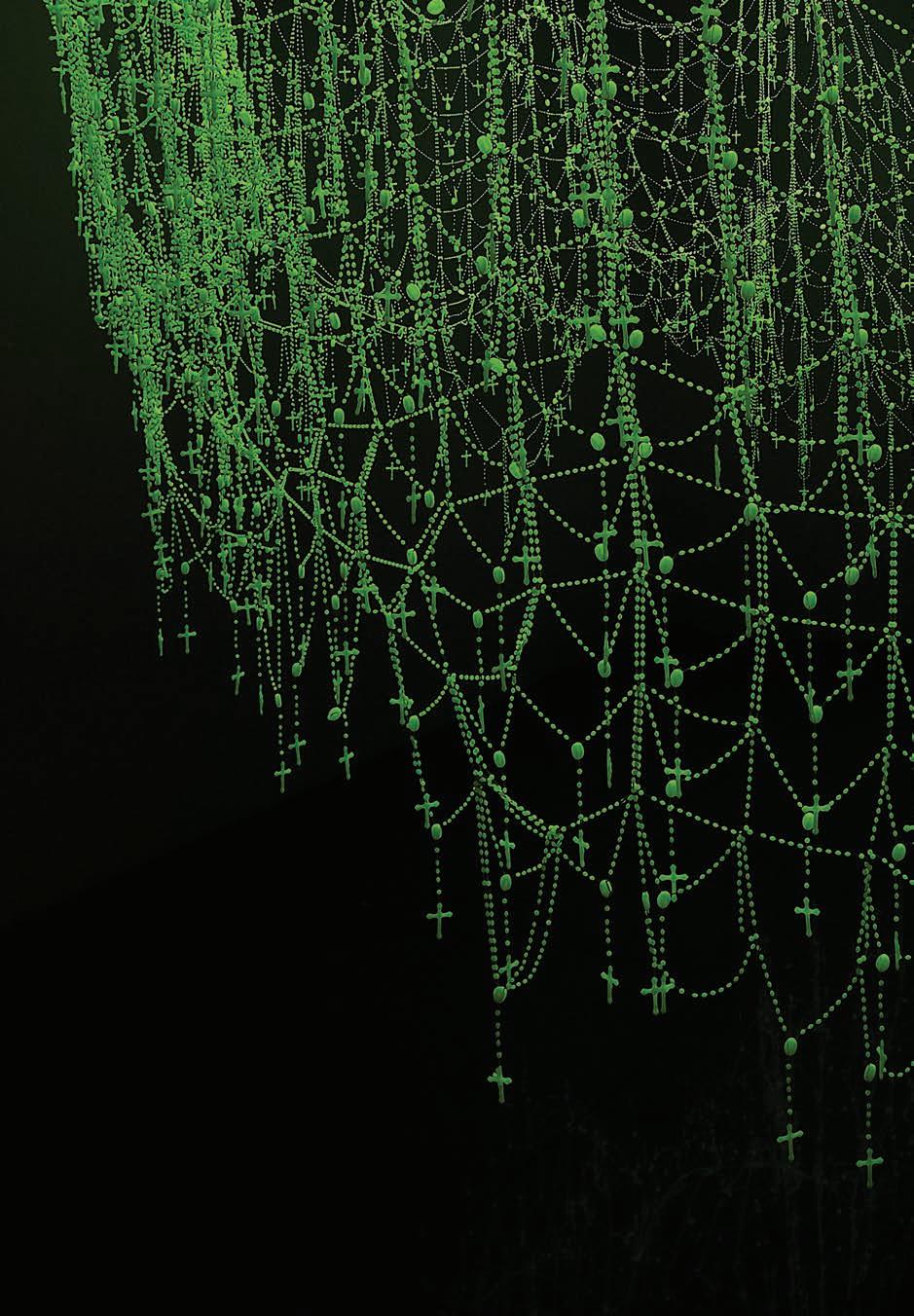 Rosarios luminosos y tanza [Lighted rosaries and ribbon] Instalación [Installation] Medidas variables [Varying measurements] Colección David Gorodisch, Buenos Airesp 181-185