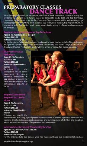 Intermediate/Advanced Theater Rhythm Tap Ages: 11–18, Tuesdays, 6:15–7:15 pm Tuition: $167.50 Instructor: Beth Caprio